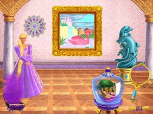 Barbie Принцесса Рапунцель (Barbie as Rapunzel A Creative Adventure) – интересный и красочный квест для девочек, которая также расположена к обучению. Ты окунешься в необыкновенную историю главной героини, которой тебе предстоит помочь справится с проблемами и неурядицами. Все дело в том, что изначально ты познакомишься со злой и очень завистливой волшебницей, решившей превратить жениха Рапунцель в камень, тем самым наложив на него нескончаемое проклятье. Это очень расстроило нашу главную героиню, и она решает, во что бы это не стало, спасти своего возлюбленного из коварных лап соперницы. Ты отправишься вместе с Барби в увлекательное, но очень опасное приключение, где освободишь от каменных оков принца. Красота замка тоже утеряна, поэтому работы тебе точно прибавится, ведь ты хочешь вернуть былую красоту своего прекрасного дома, чтобы там царили любовь и мир. Прежде чем ты доберешься до поставленной цели, тебе предстоит пройти массу препятствий, которые будут постоянно попадаться на твоём пути.
