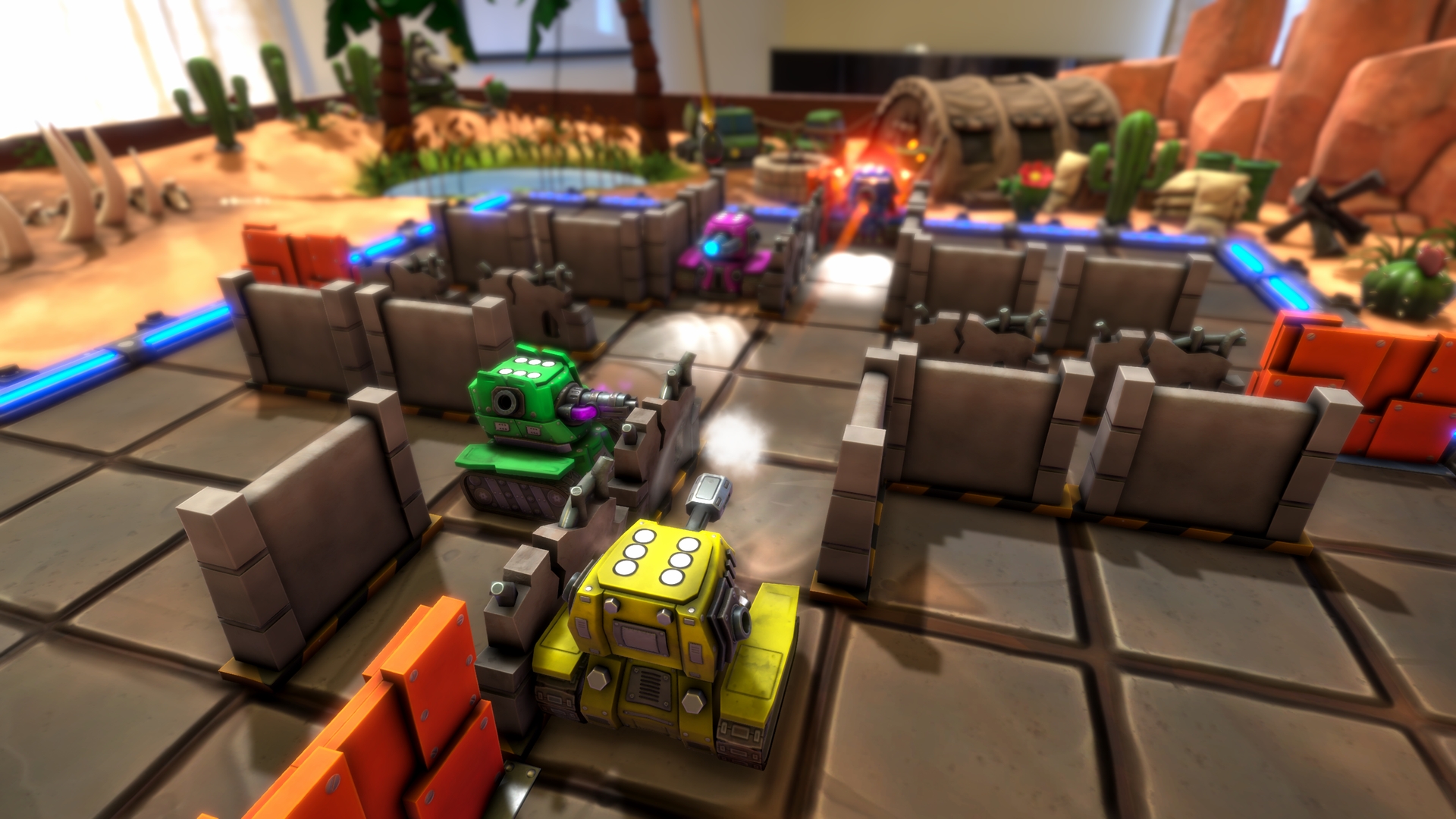 Battle Bolts – стратегическая игра с многопользовательским режимом, где ты, в группе до четырех игроков, окажешься на смертоносной арене. Здесь потребуется появление твоих стратегических навыков, ведь все последующие золы необходимо продумывать заранее. Пошаговый режим позволяет тебе точно продумать свои последующие действия, чтобы обеспечить себе шанс на победу. Твои соперники максимально непредсказуемы, поэтому наносов на ошибку у тебя просто нет. Также в твоём запасе есть определенные экшен ходы, которые ты должен использовать по назначению и в самых непредвиденных ситуациях для своей защиты. Именно с помощью данного вида ходов ты сможешь застать своих противников врасплох, тем самым уничтожив из в два счета. По мере прохождения не забывай собирать бонусы, которые также выступают как усиления для нашего героя, что позволит ему обрести более могущественную силу и определенные навыки. Арена в игре также опасная и хранит в себе массу смертельных ловушек, поэтому тебе следует передвигаться с максимальной осторожностью. Ты должен действовать максимально динамично, при этом выполняя необходимые трюки и сбивая с толку своих противников.