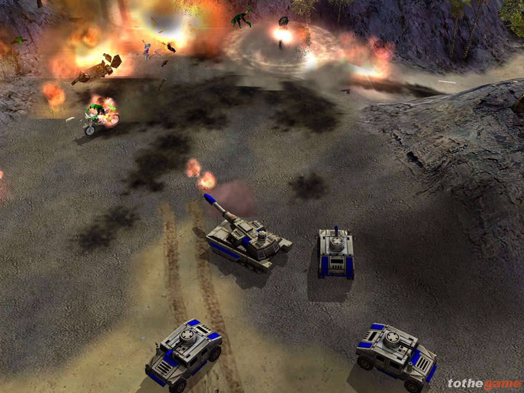 Command & Conquer Generals (Командуй и Побеждай Генералы) – качественное и улучшенное дополнение к основной игре в жанре стратегии. Здесь тебе предстоит отправится в далёкое будущее, где ты будешь состоять в команде глобальной армии освобождения. Отправляйся на феерические сражения с террористами, дабы освободить мир от сторонников зла. Добавлено более двадцати новых юнитов, а также изменения понесла графическая составляющая. Имеется также тридцать вариантов модернизации военной боевой техники, что позволит тебе сразить огромное количество соперников на совсем пути. Также дополнением является масса лазерного оружия, которое способно убить с первого выстрела. Имеется одиночная кампания, где ты будешь проходить пятнадцать различных по сложности миссий, каждая из которых довольно опасна для твоей жизни. Ты будешь вести сопротивления на различных территориях, которые собраны со всех частей света. Имеется даже уникальный режим, где ты сможешь бросить вызов самым могущественным генералам, чтобы сразиться с ними за право господства.
