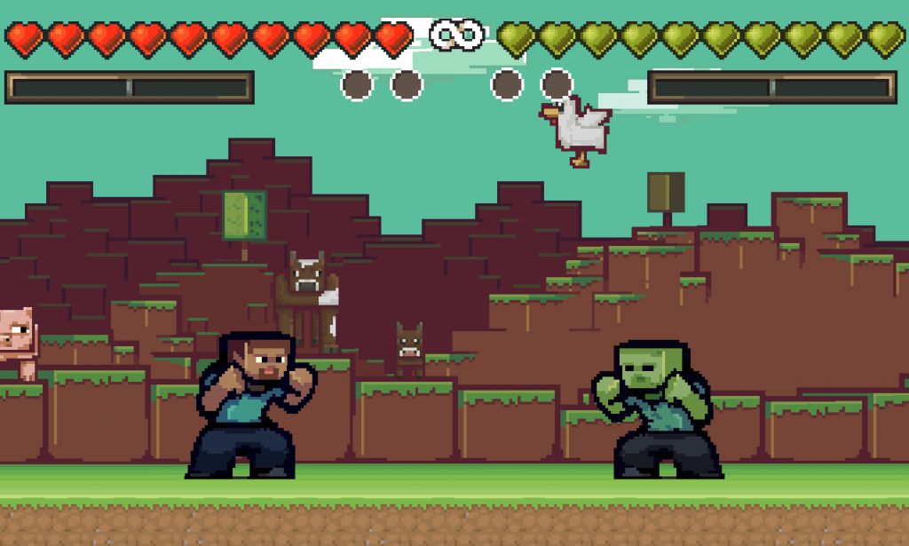 CraftFighter (КрафтФайтер) – простой в своем исполнении и небольшой по масштабам файтинг, который отправит игрока в двухмерное пространство. Весь мир здесь состоит из пикселей, а у тебя будет возможность выбора между главными героями. Главной особенностью данного игрового проекта является то, что он выполнен в стиле популярной на весь мир игры под названием Майнкрафт, где ты сможешь насладиться прекрасными видами и сыграть главными героями, похожими на героев основной игры. Здесь ты сможешь выбрать для себя и крипера, и свинью, и скелета, и многих-многих других. Более того, здесь у тебя может быть как одиночное сражение против бота компьютера, так и сопротивление против реального игрока, которым может стать твой друг. Здесь есть возможность здорово повеселиться и зарядиться позитивными эмоциями на долгий период времени, особенно если ты играешь в компании своего товарища. Здесь ты сможешь бегать, прыгать и кувыркаться, а также применять многообразие приемов по отношению к своему сопернику. Геймплей здесь захватывающий, а также хорошо продумана анимация действий, что сделает твое времяпровождение ещё интереснее.