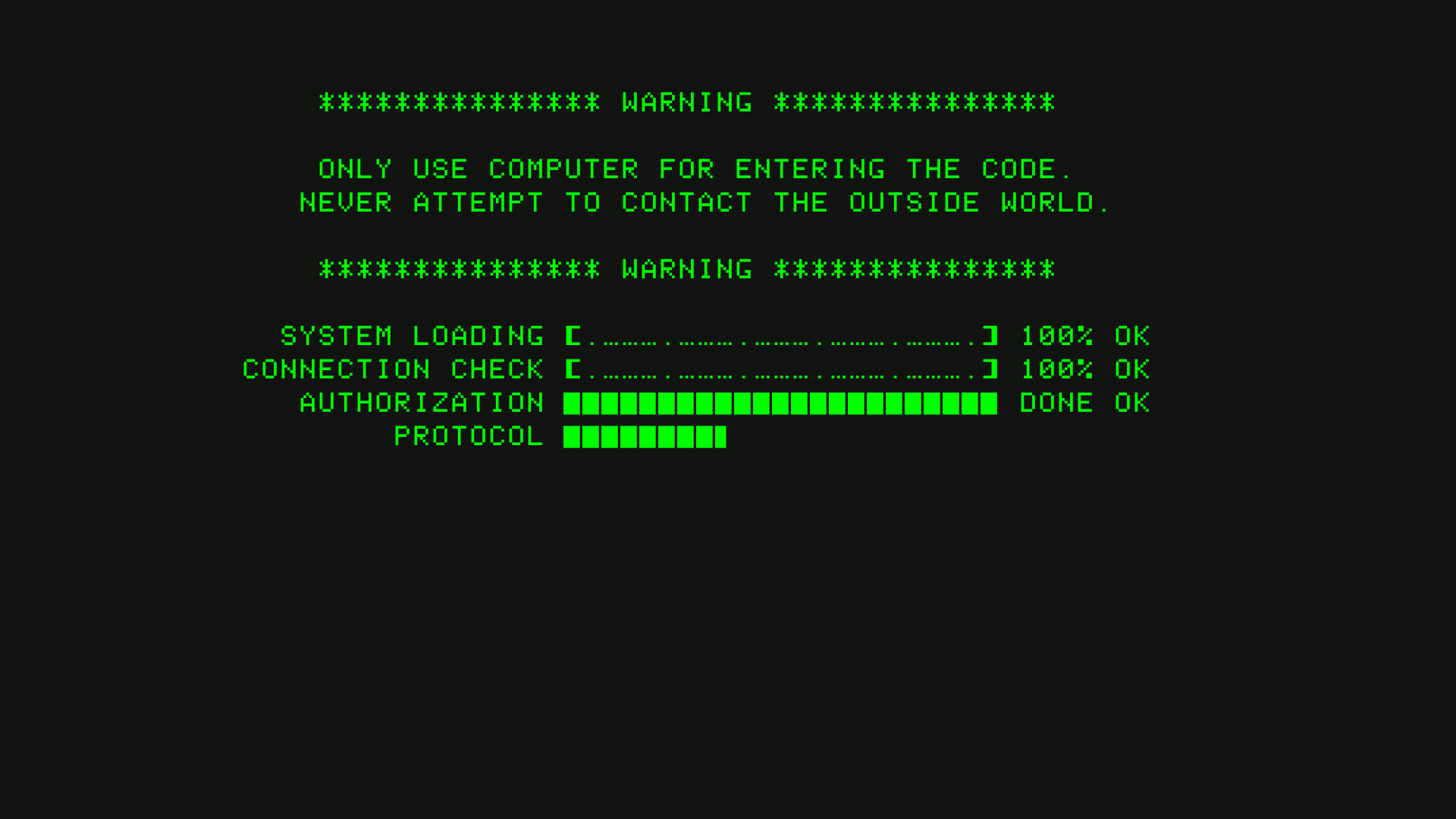 DHARMA THE SWAN – научно-исследовательский игровой проект, который был исполнен в стиле симулятора. Игра представляет из себя некую программу, в которой, на протяжении 108 секунд должна быть нажата определенная кнопка. Данный проект черпал свое вдохновение в уже знаменитом и очень популярном по миру сериале под названием «Остаться в живых», где была похожая тематика в ходе линии сюжета. Задача заключается в том, чтобы когда прозвучит тревожный сигнал немедленно ввести код в микрокомпьютер, и на все это тебе отводится всего четыре минуты. Задача будет не из лёгких, так как во многом в тебя будут ограничения. Самое главное – безошибочно ввести программный код и успеть это сделать в определенный отрезок времени. Графика в игре исполнена в простой, но довольно уникальной стилистике, с приятной анимацией и дополняющим атмосферу звуковым сопровождением. Используй изученные коды, которые будут передавать в компьютер необходимую информацию, тем самым совершая заданные действия. Действовать необходимо максимально быстро и в то же время продуманно, так как любая ошибка понесет за собой неприятные последствия.