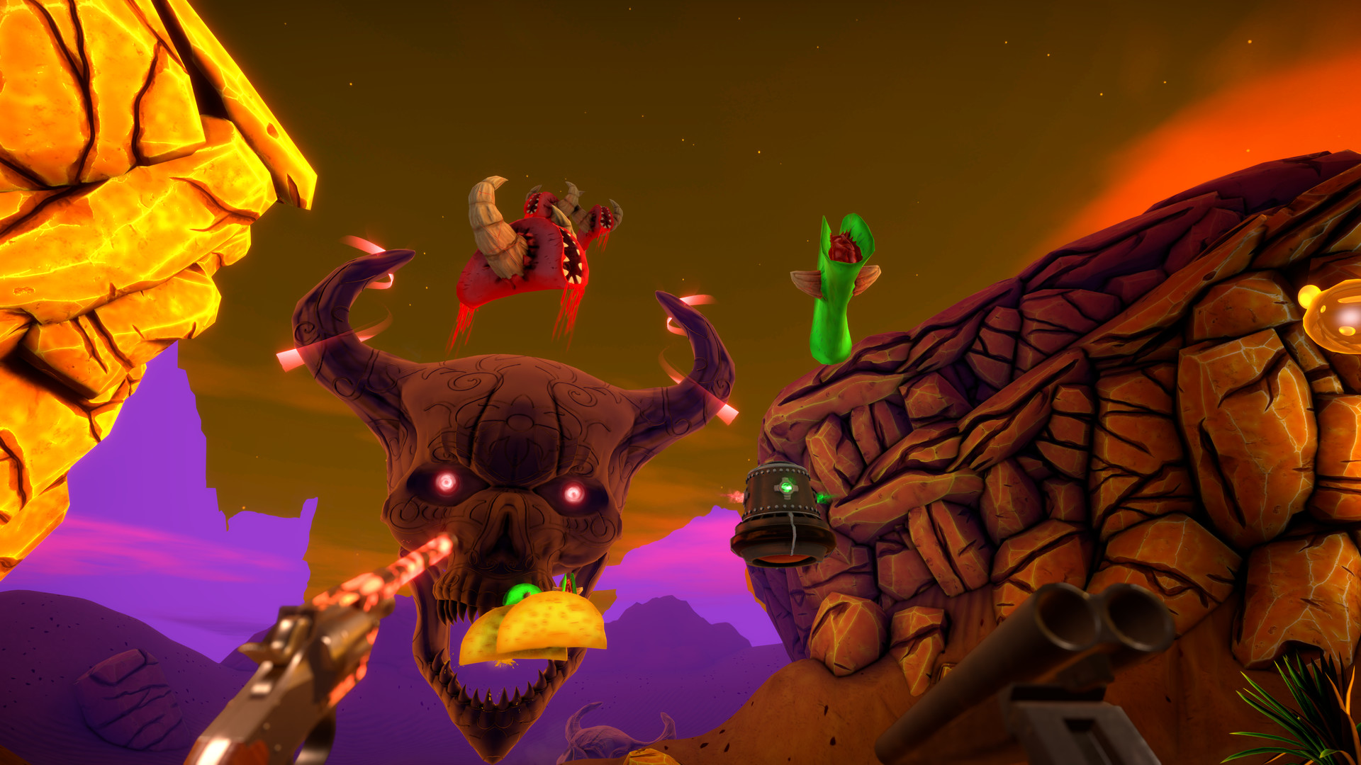 El Taco Diablo – игра в стиле шутера, где тебе предстоит отправится в настоящий безумный, хардкорный мир. В твоём арсенале будет мощный револьвер и огнестрельный дробовик, которые помогут побеждать на пути к поставленной цели. На планету, куда тебе предстоит отправится, было совершено инопланетное вторжение. Это говорит о том, что тебе предстоит бороться с разными жуткими созданиями, чтобы спасти мир от полного уничтожения. Ты будешь проходить достаточно тяжёлый путь и стараться завоевать как можно больше пространства, полностью очистив его от вражеской силы. Здесь тебе потребуется быстродействие и отвага, чтобы справится со всеми миссиями и испытаниями. Пройдя через полчища монстров, ты столкнешься в безжалостной битве с главным боссом, для уничтожения которого потребуются высокие уровни боевых характеристик. Именно поэтому по мере прохождения уделяй внимание улучшению своих способностей. Также игра даёт возможность здорово провести время в компании своих товарищей, где вы можете стать частью противостояния, где победить может только сильнейший. Графика в игре проста в исполнении, но это не мешает атмосфере быть завораживающей. Также тебя точно порадует наличие сразу нескольких видов врагов, к каждому из которых нужно найти особый подход.