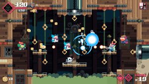 Flinthook (Флинтхук) – игра в жанре платформера, где тебе предстоит отправится на путь сопротивления и сразиться с самыми коварными соперниками на пути. Здесь ты будешь спасать галактику от нашествия сторонников вражеской силы, которые намерены любыми способами ее уничтожить. Исследуй тщательно космическое пространство, дабы раздобыть различные сокровища, которые ты затем сможешь поменять на полезные предметы. Ты сыграешь роль главного героя, который, взявшись за управление собственным кораблем, отправится на устранение пиратов, которые точно задумали что-то неладное. Тебя ждёт огромное количество уровней, каждый из которых имеет особенность генерироваться случайным образом, что значительно разнообразит твое времяпровождение. На каждом уровне тебя ждёт ряд испытаний, пройдя которые, ты столкнешься с коварным и могущественным боссом. Главного злодея победить будет не так то и просто, поэтому ты прежде должен начаться опыта, а также развивать свои способности и умения. У твоего героя имеется особенность, ведь у него крюк вместо кисти руки. Этот крюк будет верным другом для него на всех последующих уровнях, ведь с помощью него он сможет цепляться за любые платформы и стены, чтобы перепрыгивать опасные ловушки и как можно быстрее передвигаться по территории того, или иного уровня.