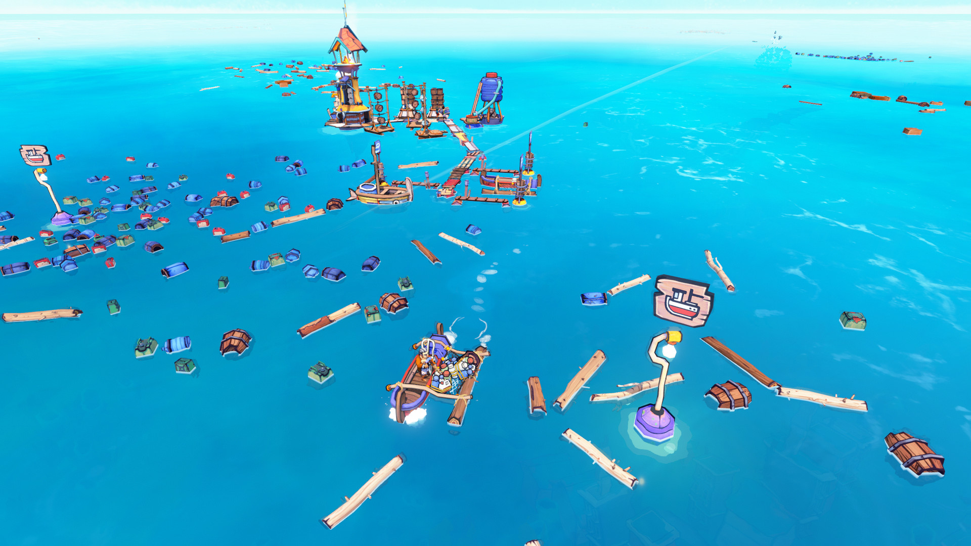 Flotsam – игра в жанре симулятора выживания, где тебе необходимо взять под контроль группу людей, так как на тебя возлагается ответственность за их жизни. Огромный, бескрайний водоем не даёт никаких шансов, но тебе получится добиться поставленной цели, если ты будешь действовать правильно. Отправляйся на исследование окружающего мира, добывай мусор, в котором всегда могут находится полезные предметы и ценные ресурсы. Добывай пищу и воду, так как с водоема пить будет очень опасно, потребуется специальная обработка на огне. Дел у тебя будет масса, поэтому скучать точно не придется. Займись рыбалкой, дабы обеспечить себя пищей, но поймать улов будет не так уж и просто, зачастую тебе будет попадаться мусор. Не обойдется и без нападения жителей водоема, которые будут пытаться отыскать себе очередную добычу. Тебе потребуется специальное оружие, чтобы отбить атаку обидчика либо вовсе его уничтожить. Также ты должен уделить внимание научным исследованиям, что позволит тебе сделать жизнь комфортнее и безопаснее.