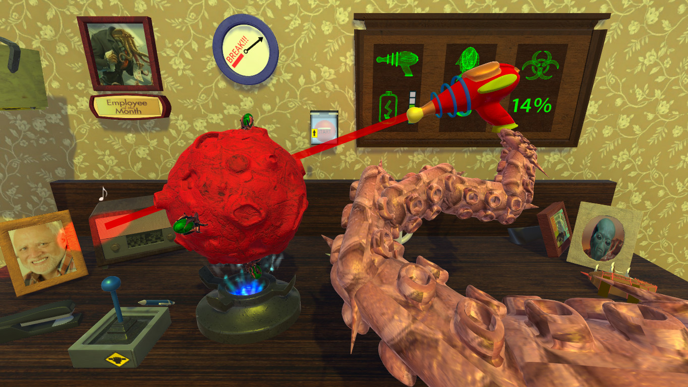 Godly Corp – игровой проект, представляющий из себя жанр симулятора, действия которого полностью основываются на физических законах. Здесь ты попадаешь в оригинальный мир, где будешь проходить различной степени сложности испытания, а также развивать свои навыки логического мышления. Здесь ты возьмёшь на себя роль стажёра, который обучается в могущественной межгалактической корпорации. Тебе по ходу действия будут даваться различные задачи, которые ты должен будешь исполнять безошибочно. Все бы было отлично, не включая одного фактора – вместе рук у тебя имеются щупальца. Именно поэтому для начала тебе необходимо дополнить свои навыки по управлению щупальцами, а затем приниматься за выполнение поставленных миссий. На твои плечи ложиться огромная ответственность за жизни на планетах, поэтому тебе нельзя допускать ошибок, которые могут привести ее к приятным последствиям. Каждый новый день будет все сложнее для тебя, поэтому ты должен усовершенствует себя и свои умения, чтобы справляться с заданиями любой степени сложности. Здесь тебе всегда будет чем заняться, именно поэтому скучать у тебя просто не будет времени.