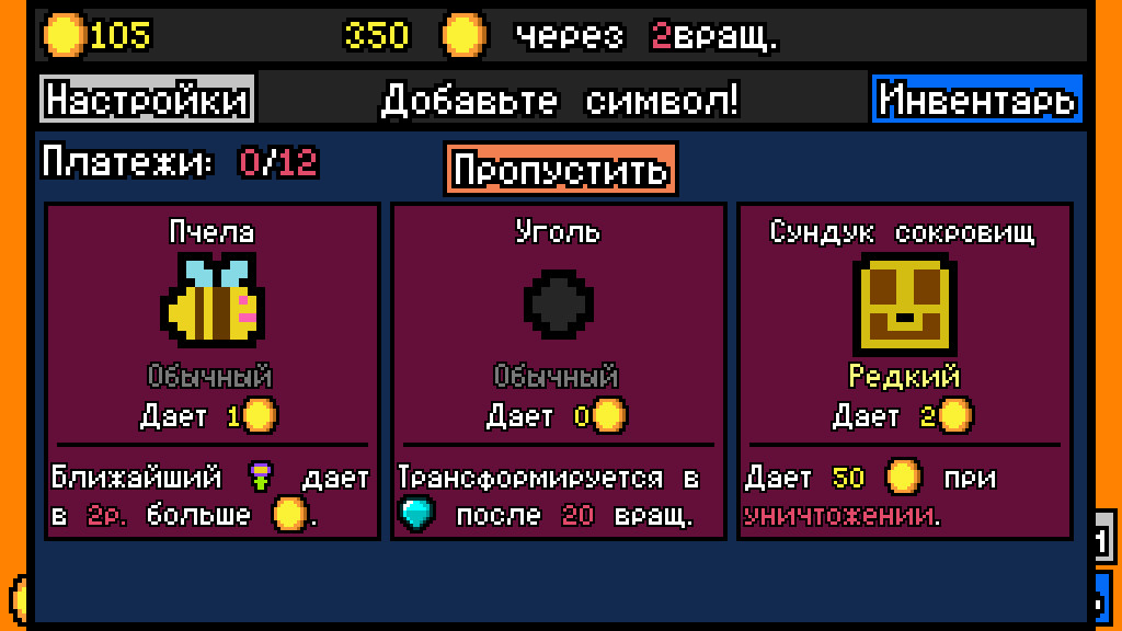 Luck be a Landlord (Удачи, арендодатель) – небольшая и довольно простая в своем исполнении игра, которая успешно относит себя к жанру стратегии, где нам предстоит сделать все возможное, чтобы проложить в копилку как можно больше денег. Первым делом игра порадует полноценным, продуманным сюжетом, который познакомит нас с главным героем – заядлым любителем игры в автоматы, что помогает ему оплачивать аренду жилья. Но в один момент удача покинула тебя, а арендодатель уже во всю стучит в дверь. Тебе необходимо как можно быстрее заработать деньги, поэтому ты вновь прибегаешь за помощью к игровым автоматам. В твоём кармане последняя монета, а значит и последняя надежда на успех. Будь внимательным, прояви навыки стратегического планирования, подключи смекалку и быстродействие, чтобы добиться успеха и больше не связываться с арендой. Губительными чертами могут быть жадность и азарт, которые необходимо тщательно контролировать, чтобы добиться успеха. Умей вовремя остановиться и тогда деньги будут в твоём кармане. Графика была продумана в пиксельной стилистке, обладает яркими красками и приятной анимацией, что присуще играм подобного жанра.