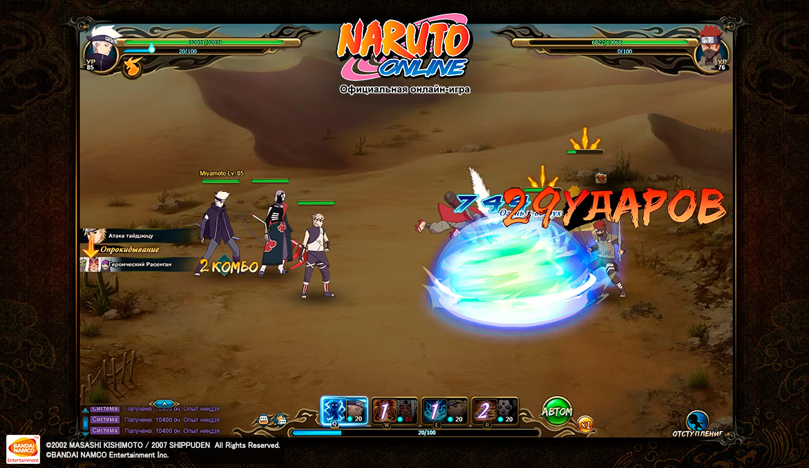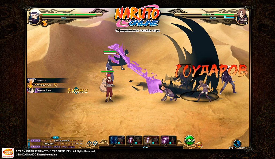 Naruto Online (Наруто Онлайн) – культовый игровой проект, который предназначен для широкой аудитории и основан на браузерной технологии. Здесь тебе предстоит с головой окунуться в красочный, разнообразный и интересный мир Наруто. Здесь ты познакомишься с его жителями и сможешь принять на себя роль опасного и бесстрашного ниндзя. Возьмись за исполнение роли уже полюбившегося ровного героя и помоги ему справится с массой испытаний на пути к главной цели. Прежде чем добиться положительного результата, тебе необходимо развивать навыки и таланты главного героя, проходя испытания и оставляя за собой выигрыши в безумных сражениях. Из особенностей стоит отметить проработанную, детализированную графику, обладающую яркими красками и приятной анимацией. Ты можешь определить для себя главного героя, сделав его участником того или иного уникального класса. Выполняй задания, проходи сложные миссии и постарайся собрать все титулы, дабы достичь совершенства как настоящий ниндзя. На арене ты будешь сталкиваться с различными типами оппонентов, к каждому из которых необходим особый подход. Одержи как можно больше побед и стань профессионалом своего дела.