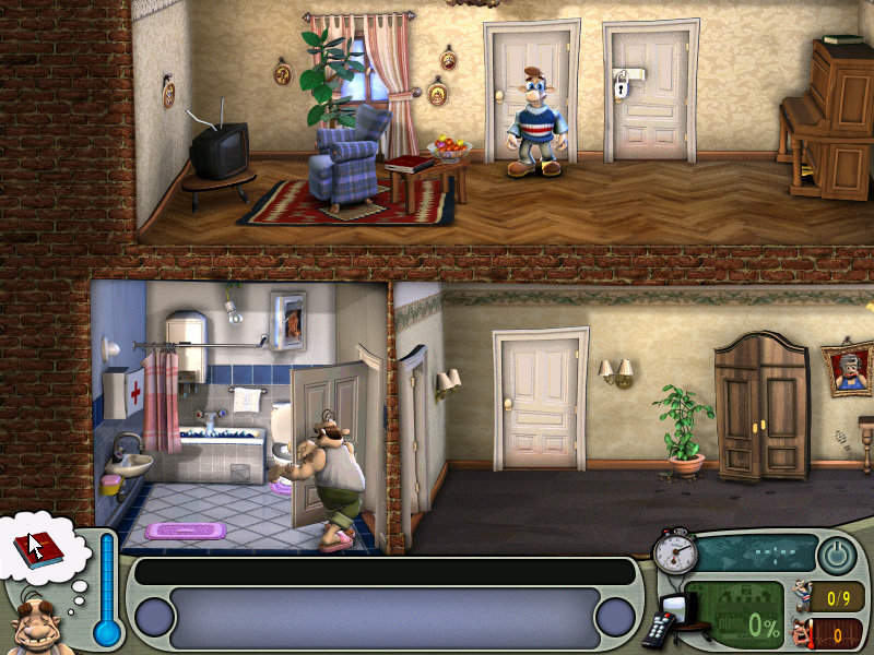 Как ты считаешь, что же делать в той ситуации, когда злой и полный коварства сосед портит твой единственный выходной? Конечно-же встать на путь отмщения и совершить различные коварства против него! Чем ты и займешься в потрясающей и очень увлекательной игре « Как достать соседа 1 (Neighbours from Hell: Revenge Is a Sweet Game) ». Здесь тебе предстоит сыграть роль главного героя по имени Вуди, который является никем иным, как пострадавшим от злости и бестактности своего соседа. Ты решаешь сделать все возможное, чтобы ему отомстить. Здесь предстоит действовать максимально незаметно, чтобы не оказаться в жутких волосатых лапах соперника. Ты отправляешься в небольшую квартиру, где будешь проникать в различные комнаты соседа, чтобы совершать всевозможные пакости, но при этом оставаться не при делах. Ты будешь различными способами мстить обидчику, получая от этого огромное удовольствие. К примеру, ты сможешь положить тухлое яйцо в холодильник, которое он затем захочет съесть, либо влить в шампунь раствор, от которого он получает! Делай все, что вздумается. Главной затруднительной ситуацией для тебя станет не только ограничение по времени, но и постоянно переходящий от одной комнаты в другую сосед. Не попадайтесь на глаза и тогда твоя цель будет достигнута успешно!