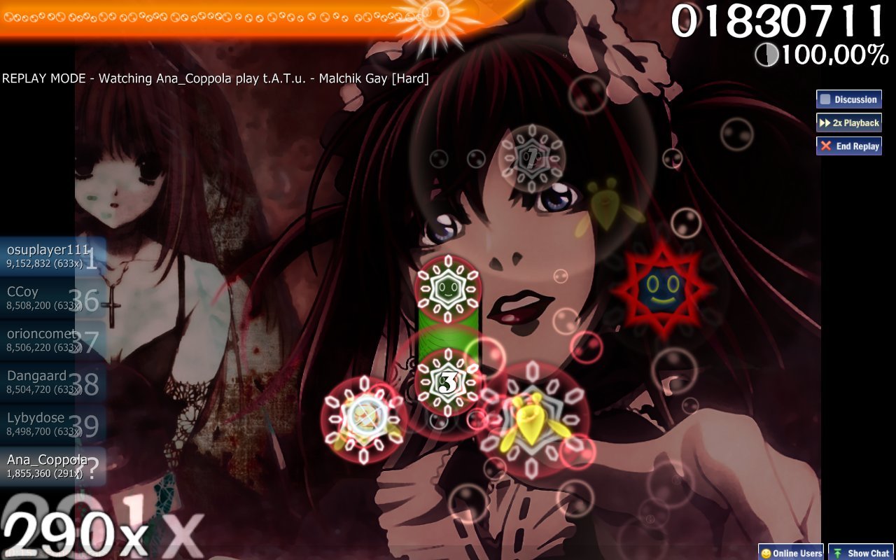 OSU (ОСУ) ритм-игра – необычная, динамичная и очень увлекательная аркада, где игровой процесс основан на щелчке по определённым кнопкам мыши либо клавиатуры. От тебя требуется только своевременное нажатие по появляющимся на экране кругам, а также ведение мяча по определённым элементам. Также будет режим, в котором ты будешь вращать спиннер, соответственно биту звукового сопровождения. Все эти задания будет выполнить на так просто, как может показаться на первый взгляд, а от тебя потребуется проявление быстродействия и смекалки. Игра позволит тебе разить свою реакцию, от которой будет зависеть результат пройденных уровней, а также количество набранных очков. Если же ты будешь неправильно выполнять то, или иное действие, у тебя будут отниматься так называемые «жизни», что приведет к неутешительному исходу. Как только у тебя заканчиваются все жизни, тут же засчитается поражение. Ты сможешь удачно сопоставлять различные клавиши на мыши и клавиатуре, либо же на двух устройствах одновременно. Настрой интерфейс так, как тебе будет удобно, для более эффективного результата.