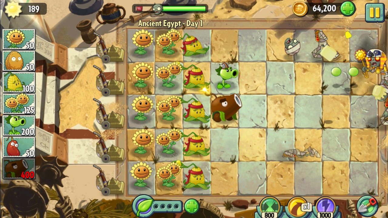 Plants vs. Zombies 2 (Плантс вс Зомбиес 2 \ Растения против Зомби 2) – игра в жанре аркадной стратегии, где тебе необходимо высаживать свой сад из самых разных растений, которые, в свою очередь, станут для тебя обороной от жутких и коварных ходячих мертвецов. Все эти зомби хотят лишь одного – это съесть твои мозги как можно быстрее, а для этого они будут применять самые разные уловки. Стоит помнить, что чем дальше ты будешь проходить в игре, тем сложнее уровни будут становится, но это сделает времяпровождение ещё более увлекательной. Ты должен как можно быстрее высаживать растения на лужайку корвет будут доступны тебе только тогда, когда ты соберёшь большее количество солнышек. Каждый раз, продвигаясь все дальше и дальше, тебе будут доступны более сильные и могущественные растения, соответственно и соперники обретут более мощную силу.