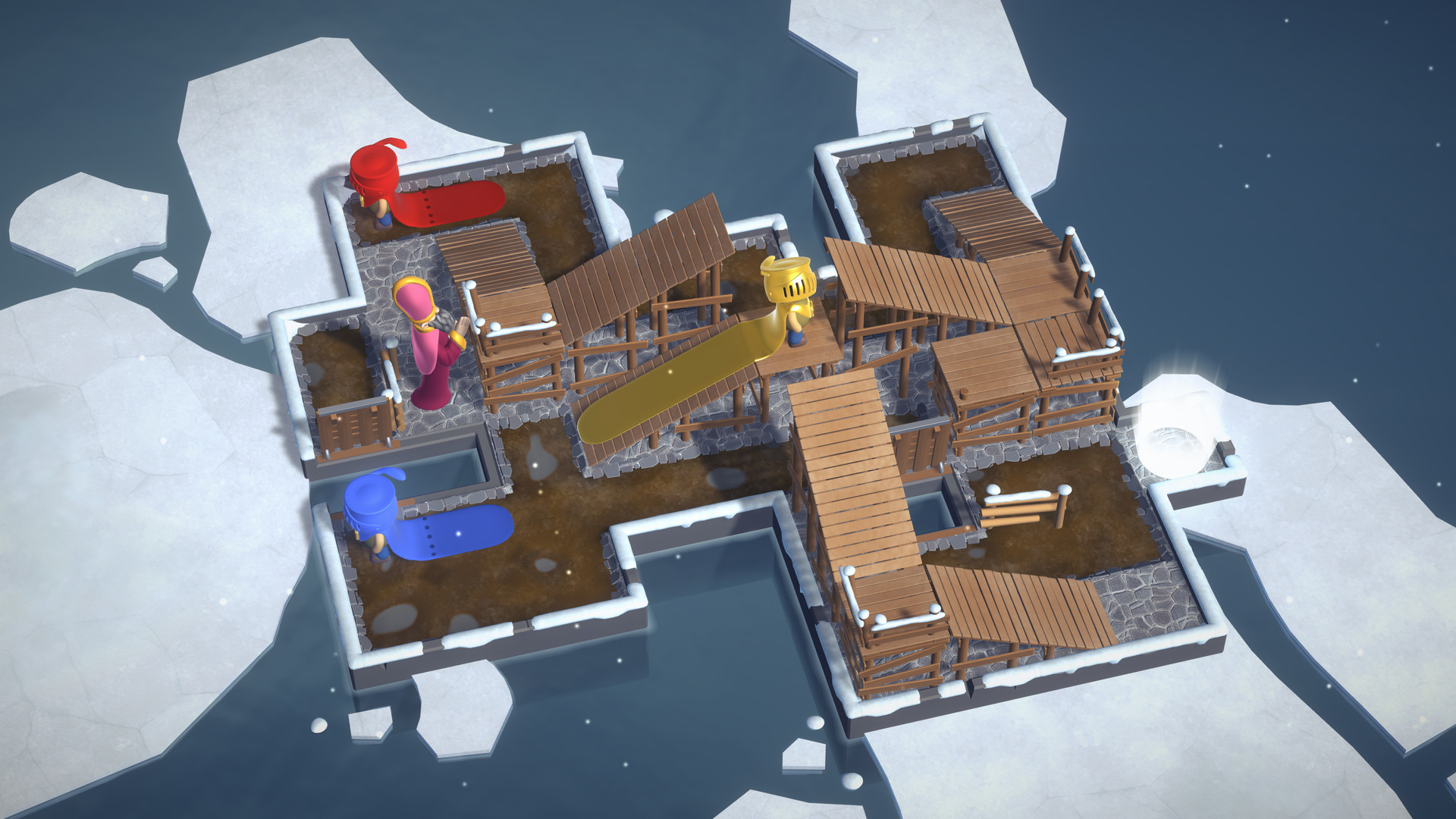 Puddle Knights – игра, разработанная в жанре головоломки, которая позволит тебе не спеша насладиться увлекательным игровым процессом, который точно не позволит тебе скучать. Что касается сюжетной линии, то здесь ее попросту нет. Твоя главная задача заключается в помощи различным героям пройти многочисленные испытания в запутанных коридорах того или иного уровня. Каждое помещение, где будут оказываться наши персонажи, максимально запутанное, а выход отыскать не так уж и просто. Выбраться из этого злополучного места практически невозможно, но шанс будет увеличиваться по мере раскрытия тайн и прохождения сложных испытаний. У каждого героя будет своя индивидуальная цель, и тебе необходимо помочь ему её достичь. Коридоры не только запутанные, но и узкие, поэтому права на ошибку у тебя попросту нет. Стоит отметить, что по мере прохождения сложность испытаний будет возрастать, поэтому на каждом этапе стоит проявлять не только быстродействие, но и смекалку, не забывая при этом о навыках тактического планирования. Графика в игре проста и приятна, а геймплей не вызовет никаких сложностей, что точно порадует всех любителей жанра.