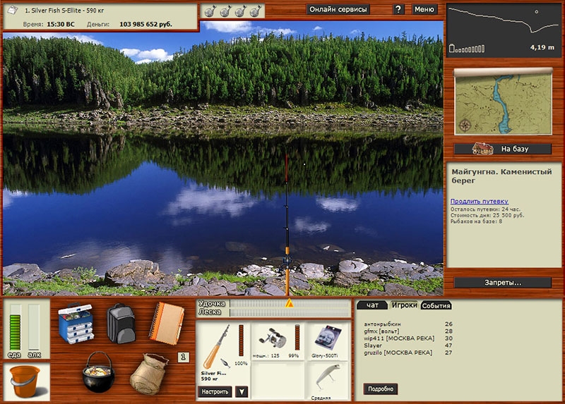 Русская рыбалка (Russian Fishing) – красочный и красивый в своем исполнении симулятор, где ты сможешь почувствовать себя на месте профессионального рыбака, который отправится на покорение морского и речного пространства по всему миру. Здесь ты сможешь повстречать реально существующие водоемы, которые находятся на разных кусочках нашей чудесной планеты. Имеется возможность играть в режиме онлайн, где ты сможешь отлично провести время в компании своих товарищей, а также доказать свое превосходство настоящим игрокам со всего мира. В каждом водоеме ты сможешь повстречать огромное количество различных видов рыб, и чем больше будет твой улов, тем больше денег и бонусов ты получишь. Старайся тратить выручку на усовершенствование удилищ и снастей, чтобы улучшать свои навыки и умения в любимом деле. Тебя точно сможет порадовать разнообразие арсенала снастей, наживок и подкормок, которые отлично пригодятся на той, или иной рыбалке.