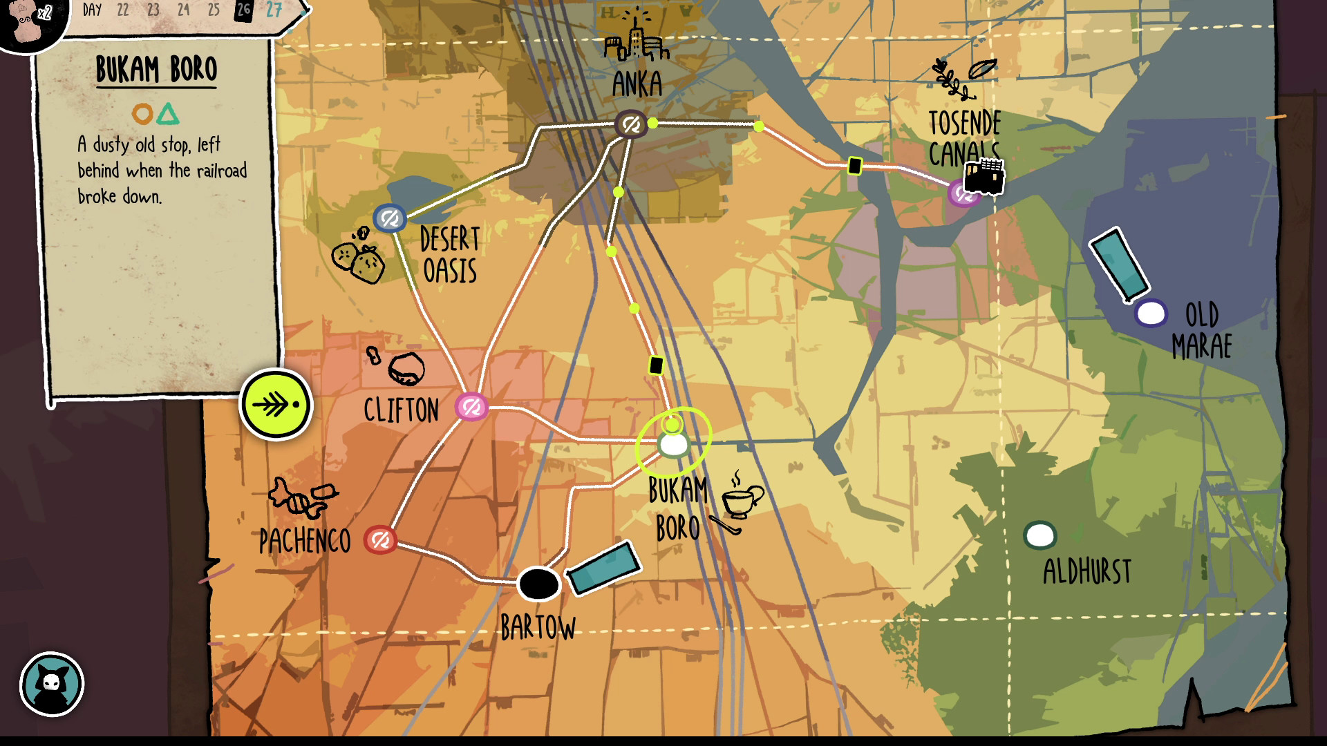 Signs of the Sojourner – приключение, исполненное в жанре адвенчуры, где ты погрузишься в необыкновенную историю и постараешься разгадать все ее тайны. События отправляют тебя в мир будущего, который совершенно изменился вследствие значительных перемен климата. Это привело не к самым приятным последствиям, перевернув жизнь человечества с ног на голову. Отныне дальние экспедиции и путешествия стали невыносимыми и люди приняли решение разделяться на изолированные сообщества. Возьмись за исполнение роли главного героя, проживающего в небольшом городишке под названием Бартоу. После смерти матери ты унаследовал магазинчик, который теперь будешь стараться привести к процветанию. Чтобы добиться цели, тебе предстоит отправиться в путешествие, добывая всевозможные интересные предметы и ценные ресурсы на продажу. Приключение подготовило не мало преград, встреч с интересными людьми, а также тайнами, которые ты будешь раскрывать для пополнения своей коллекции. Не обошлось и без так называемых «карточных дуэлей», в которых ты будешь принимать участие, стараясь выиграть соперника, чтобы обрести ту или иную вещицу.