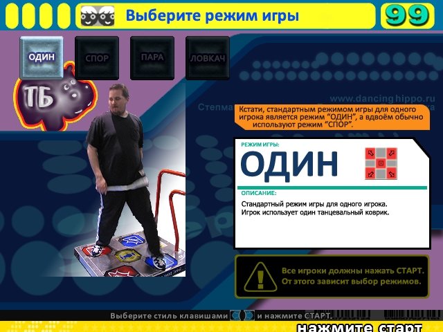 Stepmania (Степмания) – симулятор танцевального игрового автомата, который подарит тебе море положительных эмоций. Здесь имеется русифицированная версия, что значительно облегчит тебе игровой процесс. Играть ты сможешь как на простой клавиатуре, так и с помощью специально устройства, где необходимо очень быстро двигаться, нажимая вовремя на необходимые кнопки действия. Имеется специальный танцевальный коврик либо платформа для таких весёлых мероприятий, где ты отлично сможешь проверить свободное время в компании друзей. Есть четыре панели: вверх, вниз, вправо и влево. Во время игры ты будешь правильно нажимать ту или иную кнопку, тем самым зарабатывая огромное количество очков и постепенно добиваясь победы в таком веселом сражении. Ты будешь следить за перемещением стрелок на экране и соответственно им нажимать ту или иную кнопку. Полупрозрачный трафарет должен совпадать с нужной стрелкой, и именно в тот момент ты должен успеть нажать нужную клавишу. Здесь ты сможешь здорово развить свою внимательность и скорость в действии.