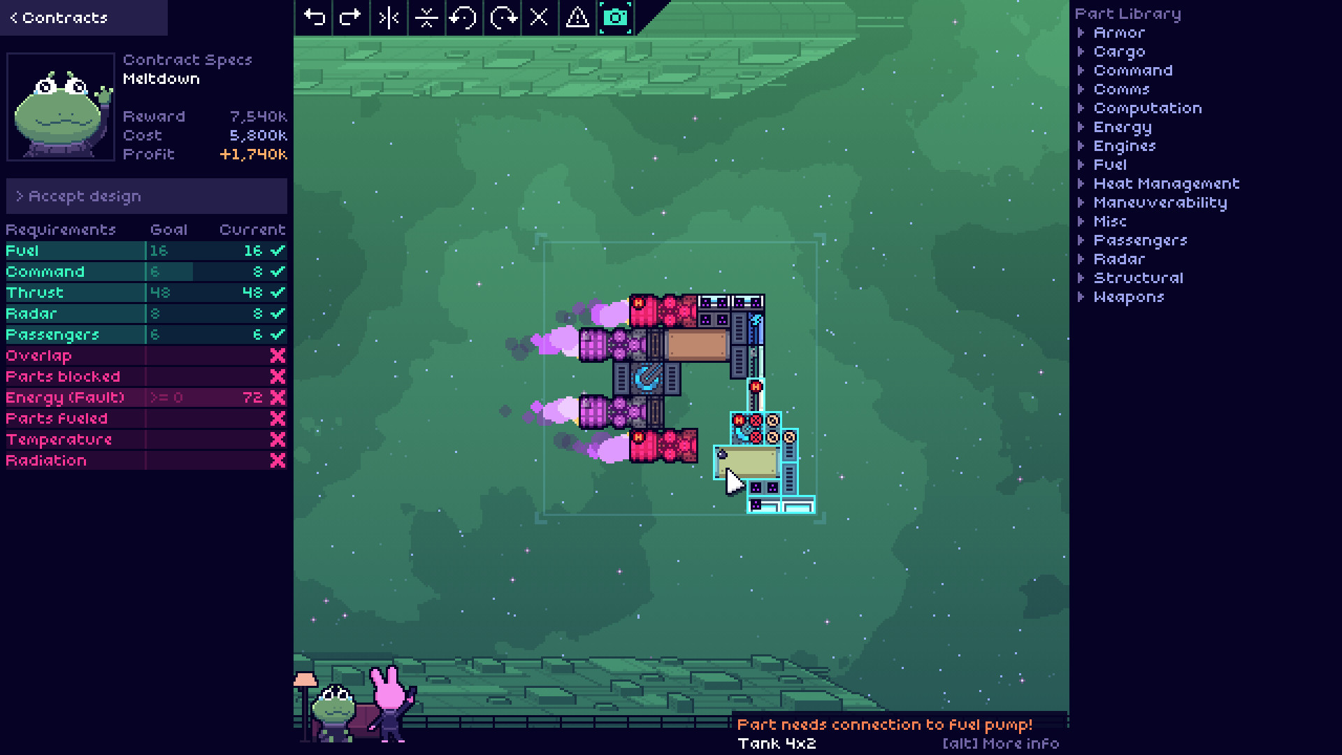 Sunshine Heavy Industries – динамичный двухмерный симулятор, наделённый элементами головоломки, где нам предстоит исполнить довольно необычную роль – роль космического инженера. Главная миссия – это исполнение довольно сложных дизайнерских задач, которые каждый раз должны быть уникальными и необычными. Запросы, поступающие от клиентов, будут самыми разными, поэтому нужно всегда развивать свои навыки и профессиональные характеристики. Внимательно следи за бюджетом, который всегда должен пополняться. Также игра предлагает отправится на исследование окружения, чтобы собрать уникальные детали для дальнейшего строительства космических кораблей. Всего предстоит пройти около пяти десятков уникальных уровня, на каждом из которых ты точно отлично проведешь время. Графика также порадует любителей жанра, так как наделена яркими красками, а общую атмосферу здорово дополнят звуковые эффекты. Пройди все испытания и сделай все, чтобы стать лучшим дизайнером вселенной.