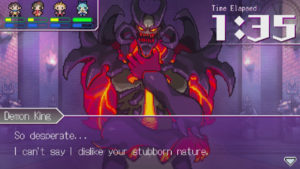 The Longest Five Minutes – уникальная в своем исполнении РПГ, где ты станешь самым настоящим завоевателем и отправишься на сокрушение тысячи сторонников вражеской силы. Игровой процесс начнется довольно необычно, а именно с финальной битвы. Но главный герой не может никак вспомнить, что же произошло – это ему и предстоит узнать. Он не может понять причину, почему ему пришлось столкнуться в безжалостной битве с темным лордом, а также нужно ответить ещё на массу тревожащих тебя вопросов. Проект разработан в жанре РПГ, где основной акцент поставлен именно на развитии сюжетной линии, что говорит об увлекательности процесса. Ты будешь находить различного рода зацепки, по которым дойдешь до воспоминаний и от туда узнаешь тайну своей жизни. Ты будешь развивать свои боевые навыки и сталкиваться с различными созданиями, которые так или иначе повлияют на твое прохождение.