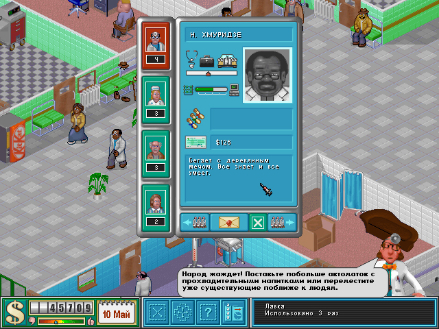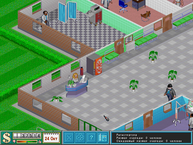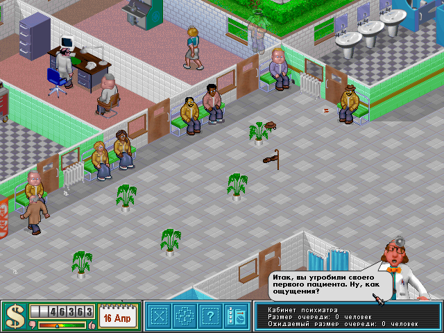 Theme Hospital – стратегия по совместительству с отличной проработанным симулятором, где ты отправишься на работу в самый настоящий госпиталь. Здесь в твои обязанности будет изначально входить разработка плана построения больницы, затем ее обустройство, найме рабочей силы, ну и в конечном итоге налаживание деятельности во всех аспектах. С самого начала тебе необходимо позаботиться о всем нужном оборудовании, чтобы каждый пациент мог обратиться со своей просьбой к тому, или иному врачу, а тот, в свою очередь, незамедлительно бы помог ему. Нации штат сотрудников, и старайся, чтобы в твоем коллективе работали только профессионалы, иначе твои владения потерпят разруху. Будь всегда на чеку и построй как можно больше мест в приемном покое и плат, оборудованных всем необходимым. Игра представляет тебе возможность пройти сразу двенадцать разных по сложности уровней, каждый из которых подготовил для тебя особые препятствия и испытания. Постепенно ты будешь зарабатывать деньги, которые трать на улучшение оборудования и расширение возможностей поликлиники.
