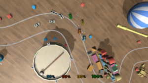 Tinker Racers – динамичный игровой проект, разработанный в жанре выживания, который здорово позабавит компанию друзей на вечеринке. Тебе предстоит стать частью безумных гоночных состязаний, где следует правильно применять обычные бытовые предметы, которые помогут достичь успеха. Финишной черты, как таковой, здесь нет, ведь победителем может оказаться лишь тот, кому удастся уцелеть и истребить всех своих оппонентов с трассы. Отправляйся в увлекательное путешествие на самой высокой скорости, покоряя множество мини-треков и делая все возможное, чтобы забрать победу в свои руки. Также есть в игре и некая камера, которая следит за всеми участниками гонки, а те, кто уйдут из-под наблюдения тут же погибают. Камера следит только за лидерами, поэтому постарайся всегда держаться первых позиций. Чем дальше ты будешь проходить, тем больше у тебя будет возможностей, а также ты сумеешь открыть ещё больше уникальных трасс. Режим мультиплеера позволит вам не только соперничать, но и объединить свои силы против коварных ботов, обогнать которых не так уж и просто, как может показаться на первый взгляд. Графика отлично продумана, имеет приятную анимацию и различные визуальные эффекты.